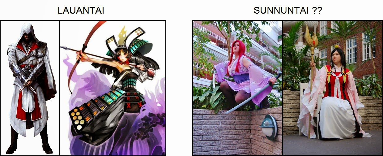 Lauantain kisoista olen kyllä palkinnoista samaa mieltä, oikeaan osoitteeseen menivät. Ja haluan kaikkia kisaajia kannustaa ja antaa arvostusta sille, että uskalsivat mennä lavalla ja antoivat yleisölle hienon ohjelman! Asut olivat todella hienoja ja cosplayn taso sen kun nousee ja nousee.